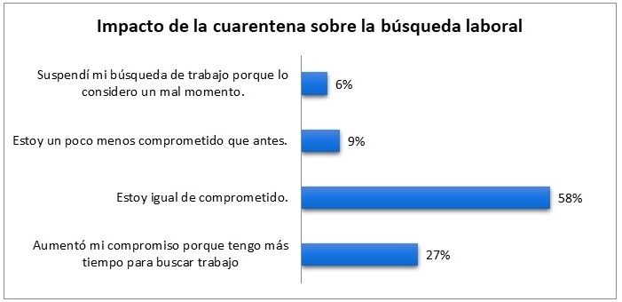 Por otra parte, el informe expone que para el 82% de los participantes la cuarentena resulta un buen momento para definir objetivos en la búsqueda laboral y el 52% de los consultados descubrió durante el período de aislamiento nuevas áreas, sectores o trabajos a los cuáles postularse, que antes no había considerado.