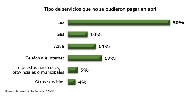 Afrontar el pago de las obligaciones impositivas y el pago de los servicios estuvo entre las dificultades más mencionadas por los productores. El 29% no pudo pagar pagar servicios públicos en abril. Igualmente en algunos sectores no agropecuarios el número se elevó a un 80%.