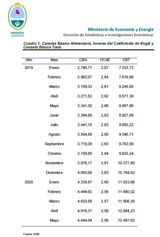 La Dirección de Estadísticas e Investigaciones Económicas de Mendoza (DEIE) comunicó este miércoles los índices de la canasta básica.