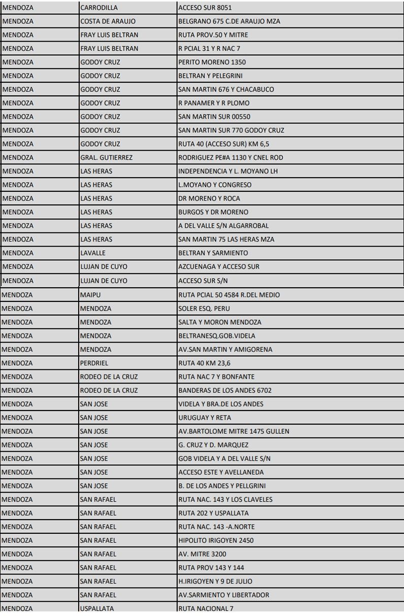 Las estaciones de servicio YPF de Mendoza incluidos en el programa: