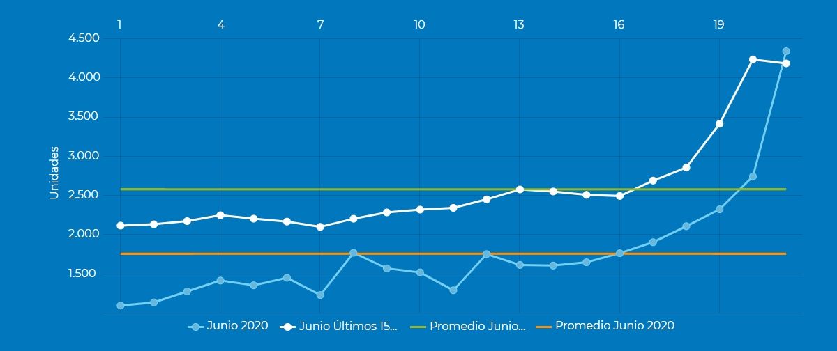 En la comparación intermensual, los patentamientos de junio reflejaron un incremento del 74,3% respecto de mayo, cuando salieron de las concesionarias un total de 21.221 unidades.