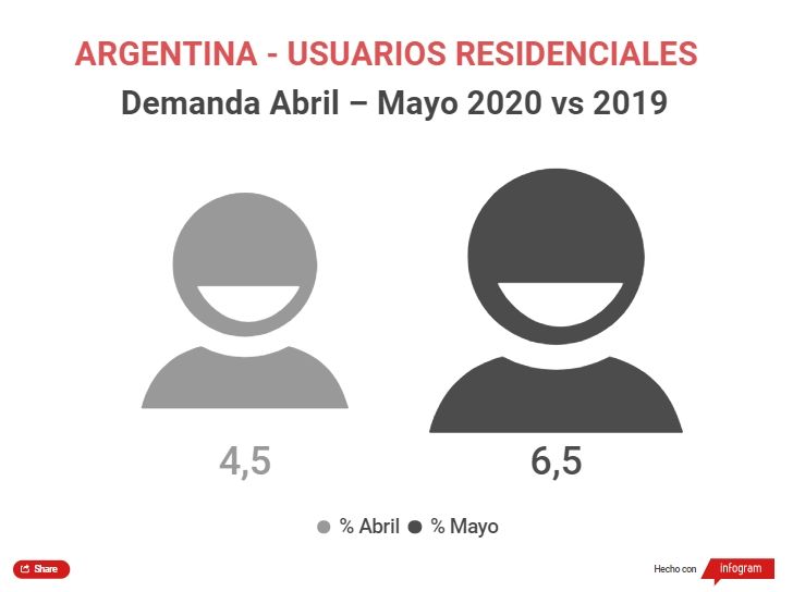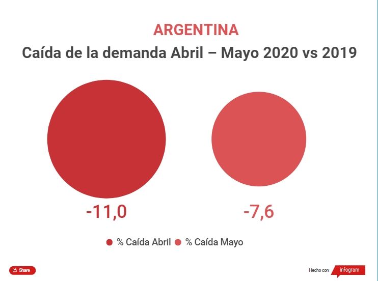 En Argentina -en lo que va de cuarentena- cayó el consumo de electricidad respecto de 2019: -11% en abril y -7,6% en mayo, según datos de CAMMESA. La diferencia en ambos meses tiene que ver con la gradual apertura de actividades tras el duro paso por la primera fase del aislamiento social obligatorio.