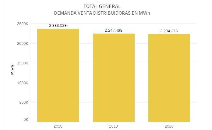 Al igual que en todo el país, salvo en usuarios residenciales, en el resto de los rubros el consumo de electricidad ha caído a niveles inferiores a 2019 y 2018.