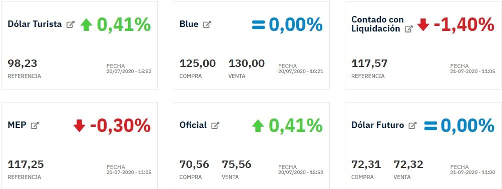El dólar blue, por su parte, se mantiene estable en $130 para la venta y $125 para la compra, los mismos valores en los que cerró ayer.
