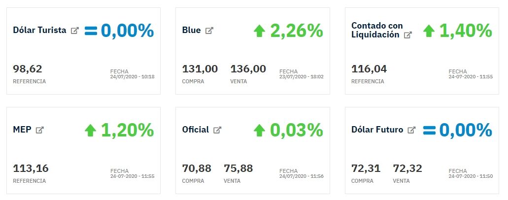 El dólar blue, por su parte, abrió a $140 para la venta y $135 para la compra y continúa su marcha alcista, alcanzando el máximo valor desde mayo y superando el récord histórico de $138 que alcanzó en aquel momento.
