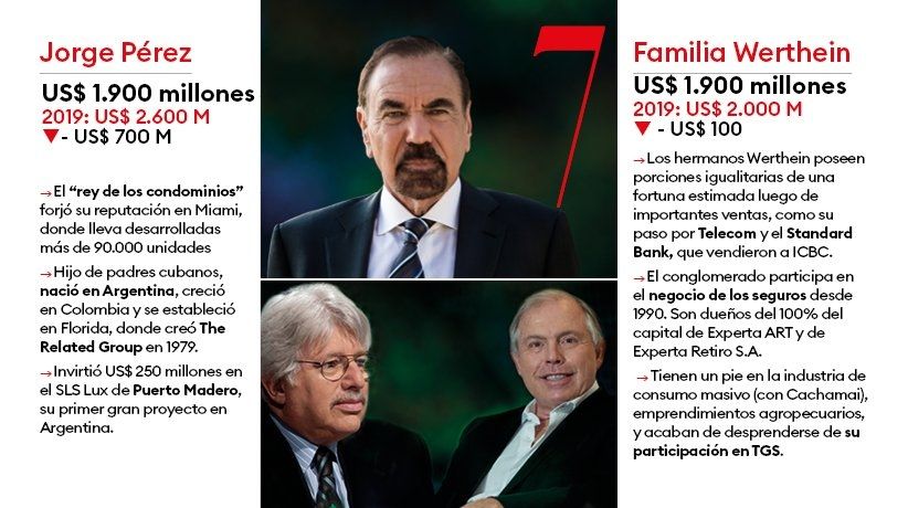 ¿Algunas conclusiones del informe? Las 50 mayores fortunas este año suman US$ 46.440 millones, un 19,9% menos que en 2019. Los Bulgheroni, en la cima. Marcos Galperin, el de mayor crecimiento.