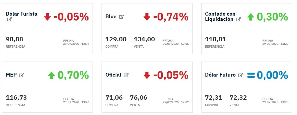 Ambas cotizaciones venían de registrar en mayo y junio sendas bajas mensuales, que llevaron al dólar MEP a casi perforar los $100 luego de las restricciones impuestas por el Banco Central. Desde allí, retomaron un camino alcista, que encendió las alarmas entre los agentes económicos mientras se demora el acuerdo por la deuda.