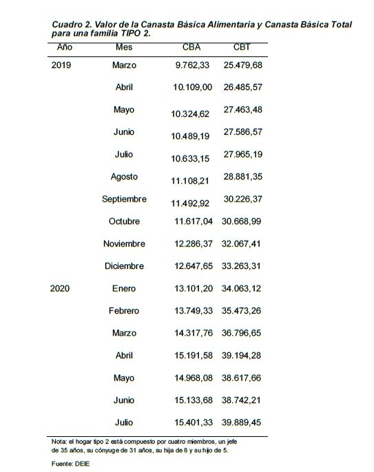 A nivel nacional, según los últimos datos publicados por el Instituto Nacional de Estadísticas y Censos (Indec) una familia tipo compuesta por cuatro personas necesitó en el mes de julio contar con ingresos superiores a los $44.521 para no ser pobre.