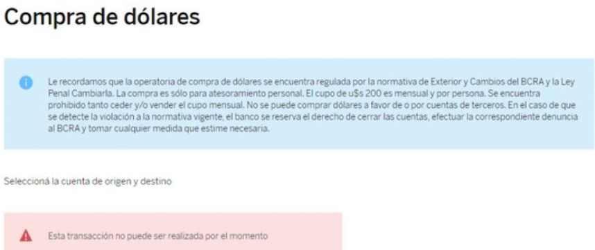 Aproxidamente desde las 10 se multiplicaron los carteles de "página no disponible" o la imposibilidad de realizar determinadas acciones dentro de las plataformas, entre ellas, la de adquirir divisas.