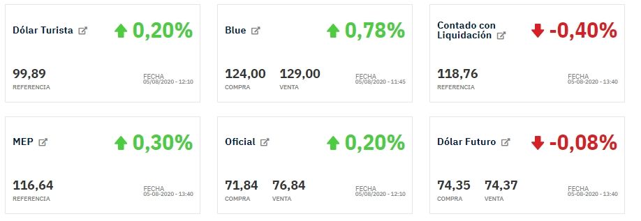 En tanto el dólar turista (oficial más 30% del impuesto PAIS) se ubica en 99,89 en promedio, apenas por encima del cierre del martes.
