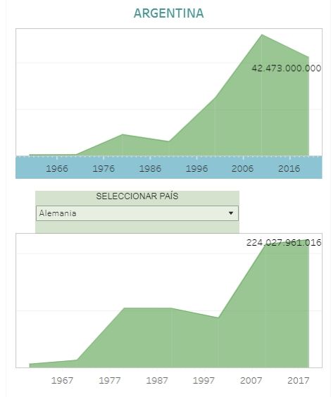 Haciendo clic en la siguiente imagen ingresá al informe interactivo que compara la evolución histórica de las Reservas Internacionales de Argentina con las del resto de las naciones del mundo, según datos extraídos del Banco Mundial y Fondo Monetario Internacional, principalmente. En el menú desplegable aparece el listado de cada nación.