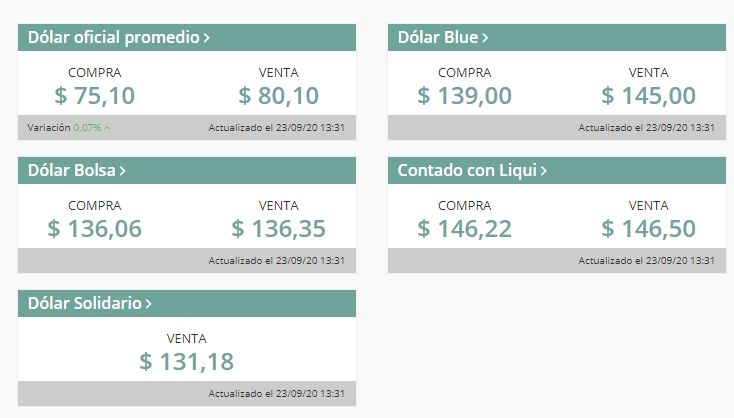 Los dólares alternativos también suben este miércoles. El dólar MEP o Bolsa, que permite adquirir dólares comprando y vendiendo bonos, llega a $ 136,70; mientras que el CCL (contado con liqui), con el que se puede sacar divisas del país, se ubica en $146,71 tras alcanzar picos de $148.