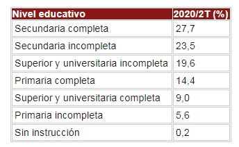 El 27,7% de los desocupados tienen secundario completo y el 23,5%, no. En el otro extremo, los que tienen primario incompleto (5,6%) y la población activa sin instrucción (0,2), Así está constituido el 100% de la población sin empleo en Argentina: