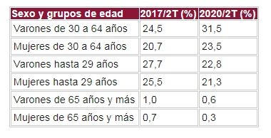 Respecto de hace tres años creció la desocupación en varones de 30 a 64 años y bajó en los jóvenes (tanto varones como mujeres):