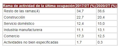 Según la rama de actividad de la última ocupación prevalecen los desempleados en el sector construcción: