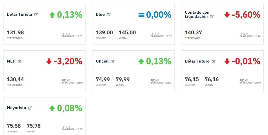 El CCL (contado con liqui), que el miércoles tocó picos de $148, baja 5,40% este jueves y se vende a $140,58, mientras que el dólar MEP o Bolsa cae 2,9% y se consigue a $130,75.