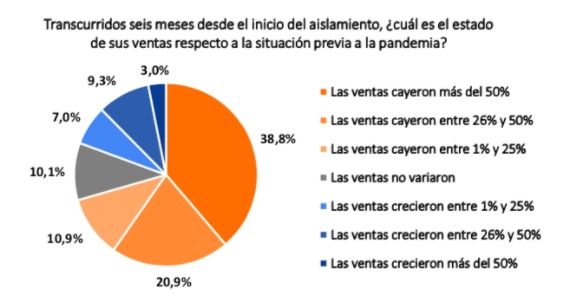 - El 70,6% de los comercios registró caídas en sus ventas en comparación con el período pre pandemia.