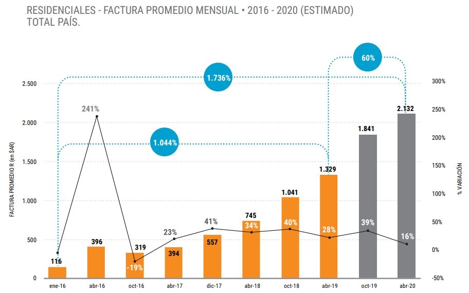 "En los casos en que estimen consumos conforme el Reglamento del Servicio de Distribución, las prestadoras deben realizar esa estimación utilizando el menor registro de consumo correspondiente al mismo periodo de 2017, 2018 y 2019 para los usuarios residenciales y aquellos no residenciales que se hayan visto imposibilitados de utilizar los mecanismos previstos", fue lo establecido por el ente.