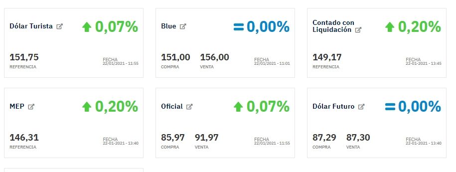 En medio del endurecimiento del cepo, el dólar blue se mantiene en $156 para la venta, el mismo precio al que cerró ayer. De esta manera, la cotización informal de la divisa norteamericana acumula una caída de 10 pesos en lo que va de 2021, alcanzando su nivel más bajo desde el 22 de diciembre.