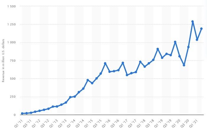 Las ventas trimestrales en los últimos años han subido de forma significativa, como se ve en la siguiente imagen: