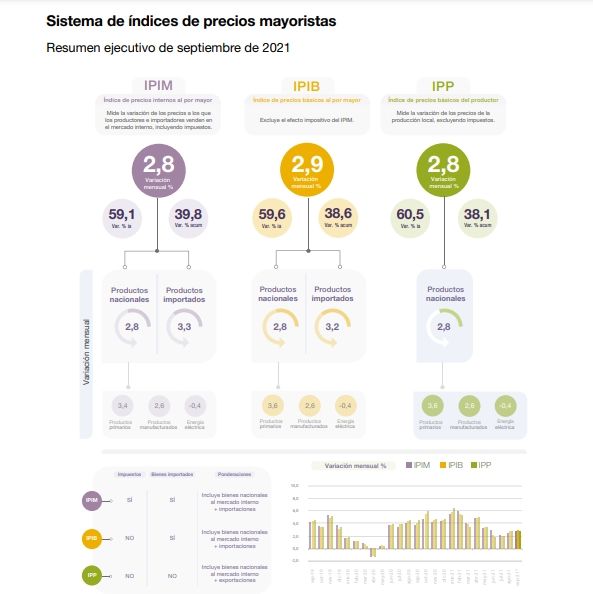 El índice de precios mayoristas registró en septiembre un incremento de 2,8%, mientras que el costo de la construcción avanzó 3,0% en el mismo período, informó hoy el Instituto Nacional de Estadística y Censos (Indec).