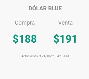 El dólar blue cerró la jornada de este jueves con un aumento de tres pesos en su precio, cotizando a 191 pesos. Este es el precio más alto de la moneda paralela en 2021. Igualmente, el récord histórico del dólar blue sigue siendo el del 23 de octubre de 2020, cuando la cotización se disparó hasta los 195 pesos, valor que no volvió a tocar.