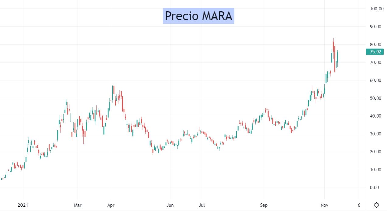 MARA es una empresa de criptominería con sede en Estados Unidos, que ha ganado mucho protagonismo este año dado su crecimiento y el del mundo cripto. La minería es un sistema que verifica las transacciones y brinda seguridad a la cadena de bloques, logrando así que se generen nuevos Bitcoins.