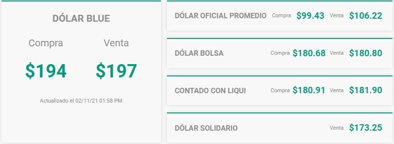 Para la compra se mantiene en 194 pesos. El dólar blue uno de los pocos al que pueden acceder los ahorristas que se vieron afectado por el cepo, que limita la compra mensual a 200 dólares, y tiene decenas de restricciones que complican a miles de personas.