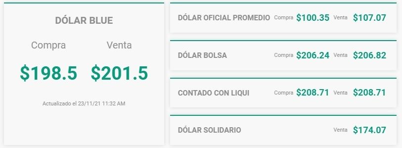 Hay reportes de subas del dólar blue en algunos puntos, aunque el precio promedio se mantiene estable. La cuenta de Twitter Finanzas Argy reportó que ya se vende a 203 en cuevas de la City.