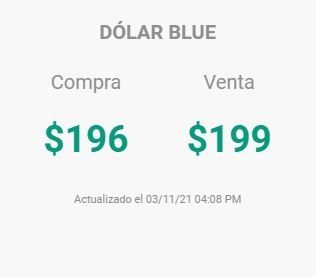 El dólar blue cerró este miércoles con un aumento de dos pesos, cotizando a 199 pesos. La cotización del dólar oficial cerró hoy en $105,38, con una suba de tres centavos en relación al cierre de ayer, mientras que los dólares bursátiles -contado con liquidación y MEP- operan con alzas de hasta 0,5%.
