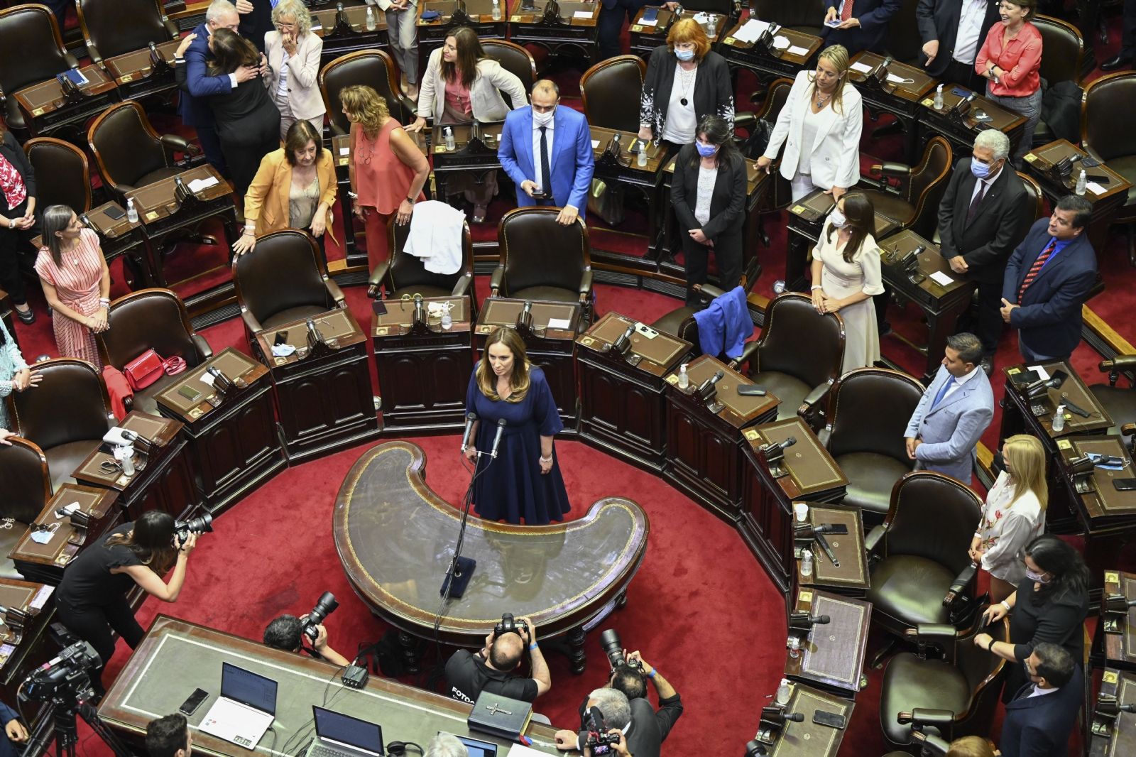 El debate en el recinto de sesiones previsto para el jueves se realizará con la nueva composición de la Cámara que asumió este viernes -tras la jura que se realizó el martes en Diputados- donde hay una fuerte paridad entre el FdT, que cuenta con 118 legisladores, y Juntos por el Cambio (JxC), que tiene 116.