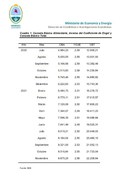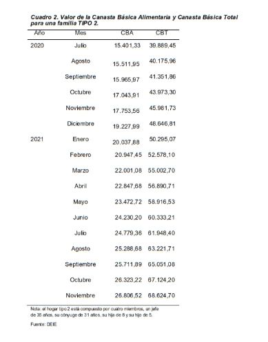 La Dirección de Estadística e Investigaciones Económicas (DEIE) informó que durante el mes de noviembre una familia tipo de 4 integrantes necesitó $68.624 para no ser considerada como pobre. Asimismo, para no entrar en la categoría de indigencia debieron percibir $26.806.