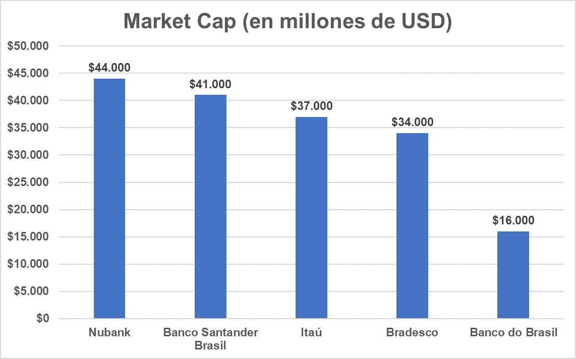Este logro le permitió superar a Itaú y Bradesco, bancos históricos de Brasil que tienen, cada uno, una valuación menor a los USD 40.000M. En Brasil, Nubank es solo superada por Petrobras (USD 70.000M) y Vale (USD 67.000). Brillante debut, ¿no?
