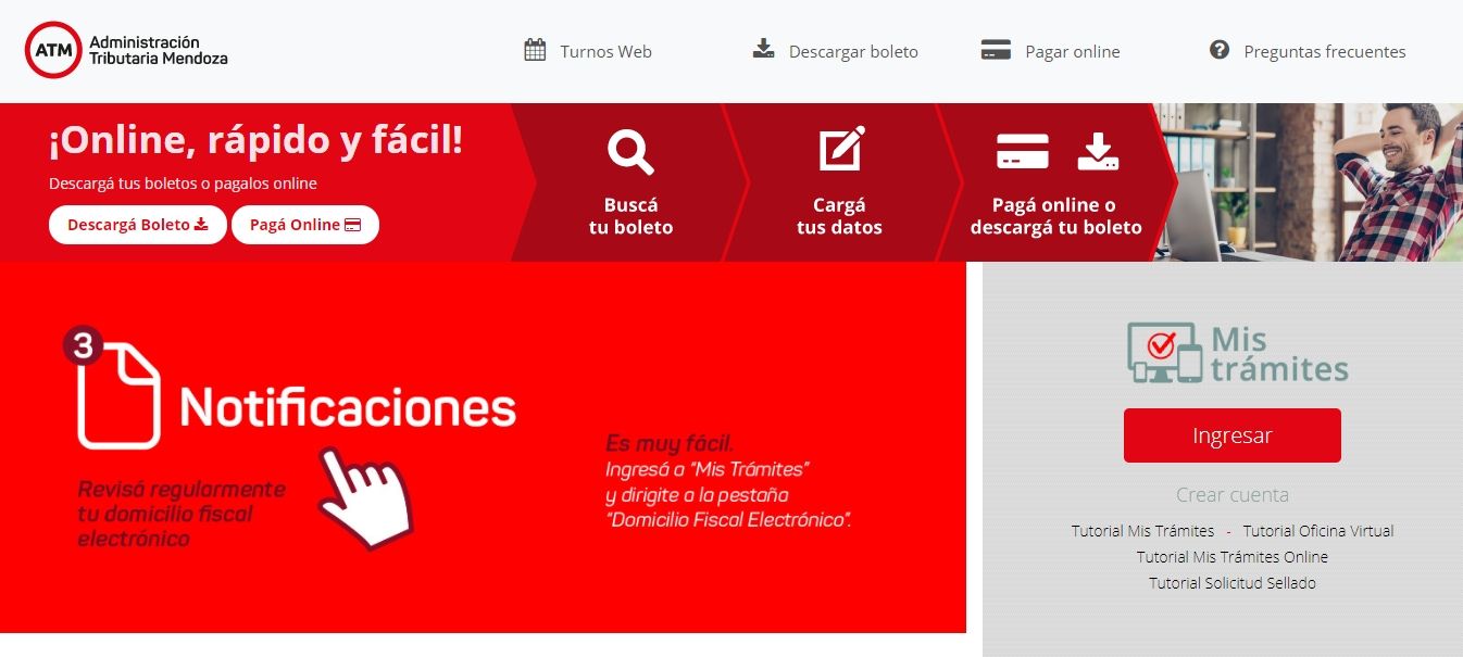 El impuesto con los nuevos valores ya está disponible y podrá consultarse en la página web de la Administración Tributaria Mendoza (ATM). Para descargarlo o pagarlo en línea, el usuario debe seleccionar la opción “Descargá Boleto” y “Pagá Online”.