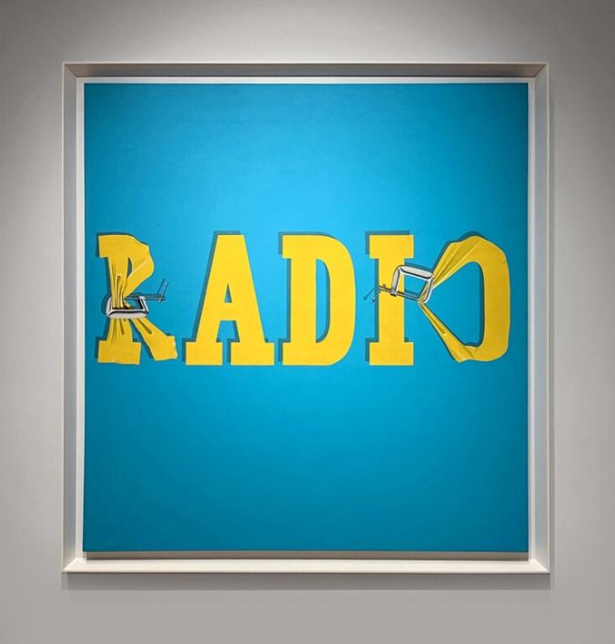 Esta obra de 1,5 metros por 1,4 metros fue pintada en 1964 por Ed Ruscha y se trata de un óleo sobre lienzo, que representa la palabra "radio" escrita en grandes letras mayúsculas amarillas, algunas distorsionadas por tornillos de apriete, sobre un fondo azul cielo. Fue subastada por Christie's en noviembre de 2019 por 52,5 millones de dólares.