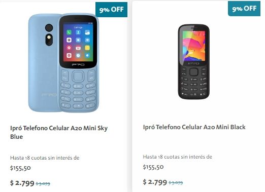 El más barato: Ipró Teléfono Celular A20 Mini Sky Blue