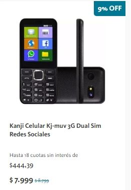 El tercero más económico: Kanji Celular Kj-muv 3G Dual Sim Redes Sociales