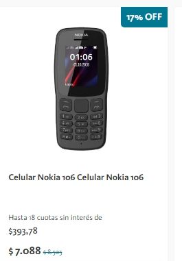 El segundo de la lista: Celular Nokia 106