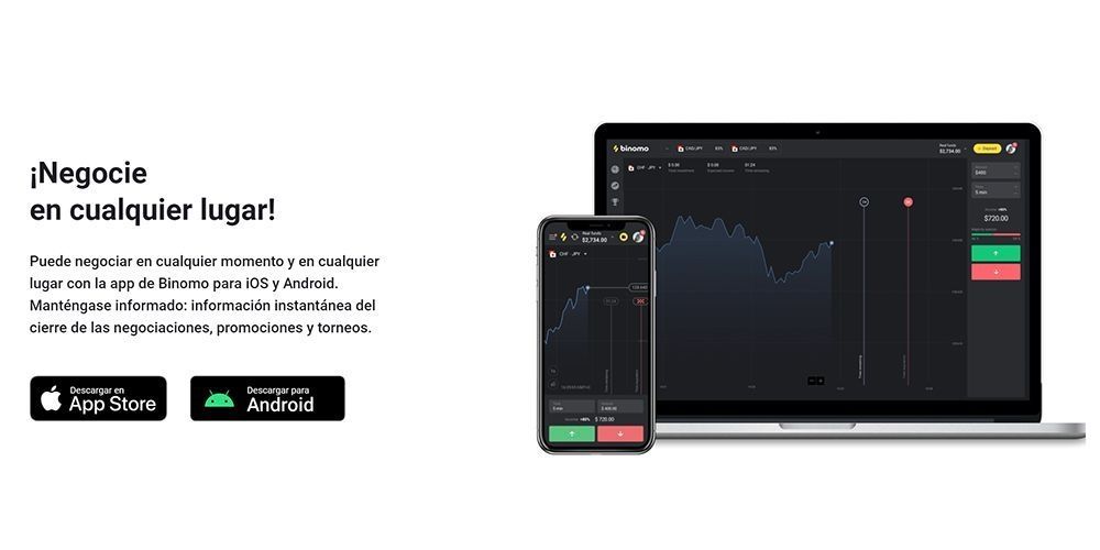 La Binomo App es una excelente herramienta que permite al Binomo trader operar desde cualquier parte del mundo a través de su dispositivo móvil con acceso a internet. Puede descargar la aplicación Binomo a su teléfono o tableta Android en Google Play. También puede descargar la aplicación en App Store si su teléfono es iOS.
