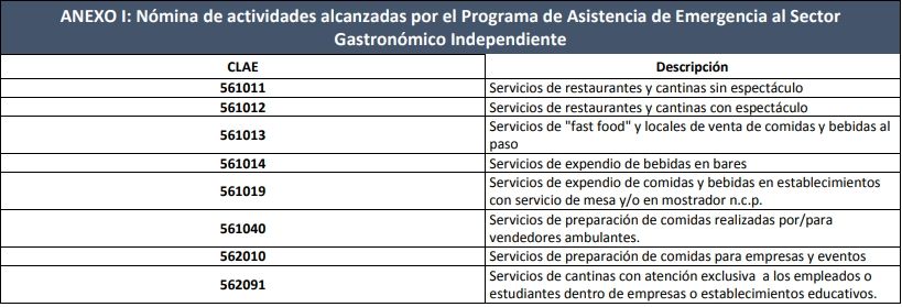 Esta medida se comprende dentro del "RePro II" y fue publicada por el Boletín Oficial bajo la denominación de “Programa de Asistencia de Emergencia al Sector Gastronómico Independiente”. Este programa también abarcaría al sector del turismo y la hotelería.