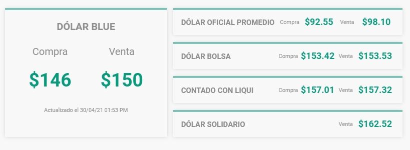 En el cierre de la semana y del mes de abril, el dólar blue baja cuatro pesos y se ubica en $150 para la venta. De esta manera, la cotización informal de la divisa norteamericana cierra el mes con una suba de 10 pesos, lo cual implica un salto del 7%.
