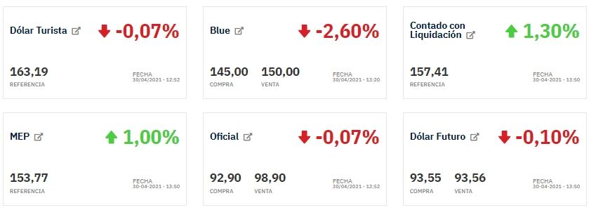 Cabe recordar que ayer el dólar blue bajó 8 pesos tras varias jornadas subiendo. La cotización informal llegó a tocar los $163 el martes igualando el valor del dólar ahorro. Luego bajó un peso el miércoles, ocho pesos el jueves y cuatro pesos hoy.