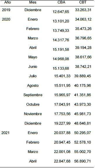 Además, comparativamente con el mes de abril de 2020, el aumento es enorme, ya que en aquel entonces las mismas familias necesitaban contar con ingresos superiores a $15.191 para no ser indigentes y superiores a $39.194 para no ser pobres.