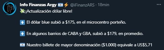 El dólar blue había comenzado la semana a $165 (el martes porque el lunes fue feriado) y cierra 10 pesos por encima luego de varias jornadas de suba.
