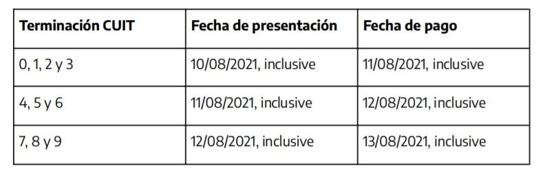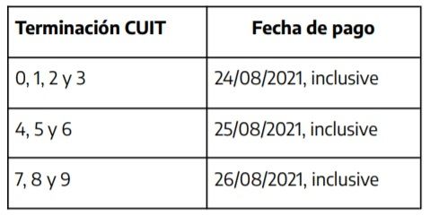 Por otro lado, para el caso del pago del primer anticipo del impuesto a las Ganancias y sobre los Bienes Personales correspondientes al período fiscal 2021, las nuevas fechas son: