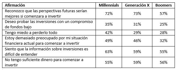 Por otro lado, parece que los Millennials están más preocupados por su futuro financiero, mientras que al mismo tiempo ven un riesgo de “perder todo” derivado de la inversión.