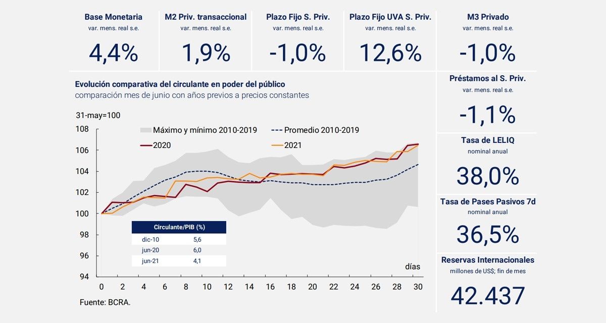 El Banco Central de la República Argentina (BCRA) publicó su Informe Monetario Mensual (IMM) correspondiente al mes de junio en el que se detallan las transacciones del sistema, incluyendo medios de pagos, préstamos e intercambio de divisas.