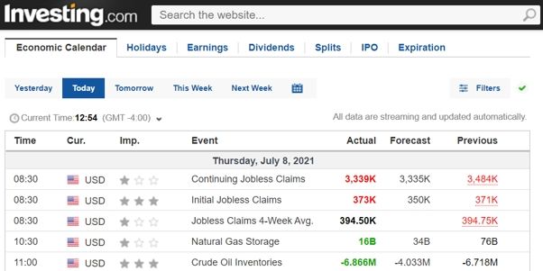 En primer lugar, el calendario económico. Acá podés ver los datos más importantes que afectan a los mercados (lo actualizan en tiempo real).