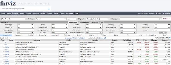 3. Finviz: el rey de los filtrados