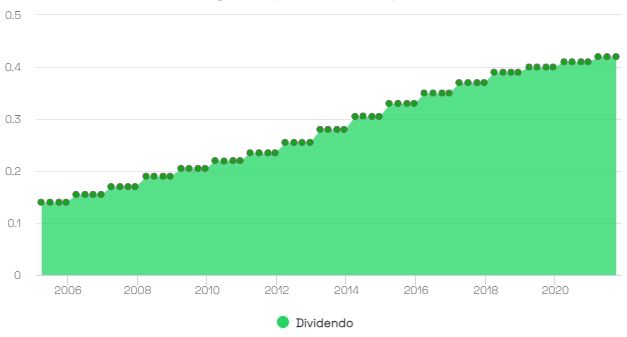 Veamos aquí los dividendos trimestrales pagados durante los últimos 15 años: